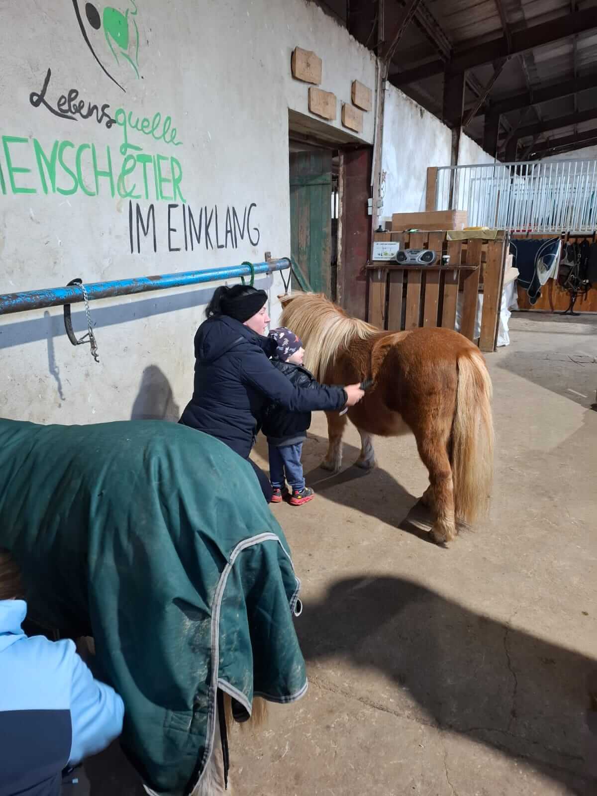 Unsere Kooperationspartnerin Juliane Lebich hat sich etwas Besonderes einfallen lassen. Für die Kleinsten war Ponyreiten angedacht und Kontaktaufnahme zu den Tieren. Die Mamas sollten sich einfach Zeit für sich nehmen und beim heißen Kakao und Wärmekissen konnten sie so einmal schöne Dinge wie Sterne und Lichterhäuschen für sich anfertigen und im Hintergrund erleben wie glücklich und entspannt die Kleinen sind.