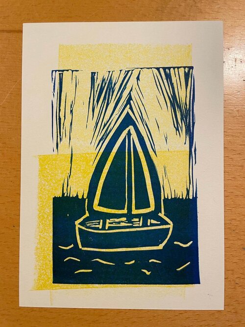 Als krönender Abschluss des Zeichen- und Aquarellkurses unter der Leitung von Yousef Darwish wurde am 25.01.2025 im Bürgerhafen ein Druckworkshop angeboten. Dieser fand unter Anleitung des Teams der Druckkammer in der STRAZE in Greifswald statt. Die Teilnehmenden gestalteten mit Hilfe der Linolschnitt-Technik eigene Druckplatten und druckten die Motive auf selbst vorbereitete Hintergründe.