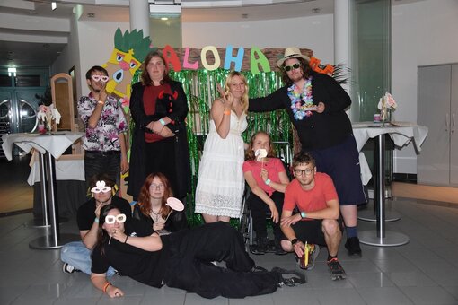 Musik und Tanz sorgten für eine tolle Stimmung und lachende Gesichter. Ein Meer aus bunten Hemden schwappte über die Tanzfläche wie eine Welle karibischer Lebensfreude. Eine Fotowand-Station mit Tiki-Flair und Hawaii-Requisiten lud zum Erinnerungsfoto ein.