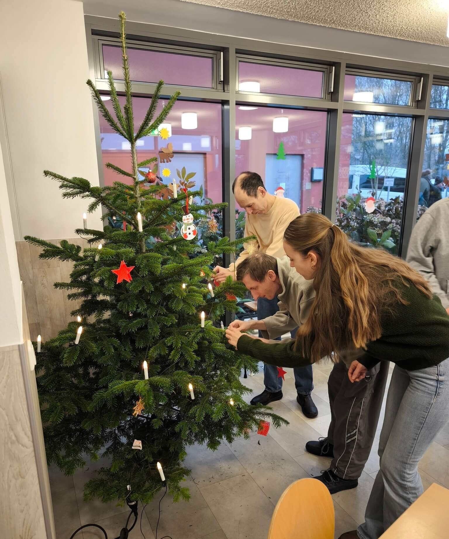 Jede und jeder brachte eigene Ideen und Wünsche mit ein. Aus der großen Vielfalt an Weihnachtsschmuck konnte sich jede Person etwas aussuchen und den Baum nach den eigenen Vorstellungen gestalten. So entstand Schritt für Schritt ein einzigartiges Kunstwerk, das die Kreativität und die Gemeinschaft aller Beteiligten widerspiegelt.