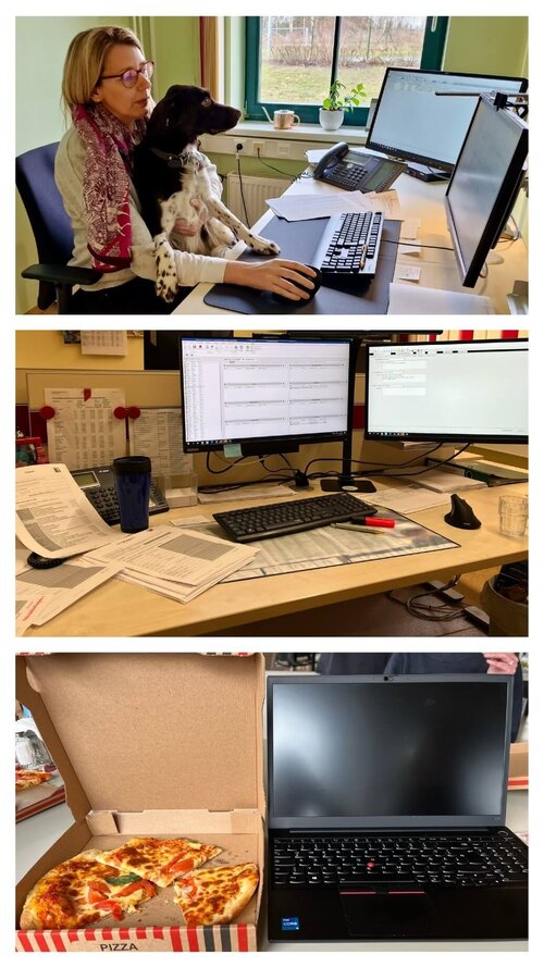 Um diesem Bedarf gerecht zu werden, entstand die Idee, sich am Wochenende zu treffen, um einen Großteil der Daten einzupflegen. Durch die Nutzung von Doppelmonitor-Plätzen konnte die Übertragung beschleunigt werden. So wurde am Samstag in allen Büros emsig gearbeitet, begleitet von einem motivierenden Hund, einem leckeren Buffet und bestellter Pizza zum gemeinsamen Mittagessen – eine echte Connext-Pizza-Party!