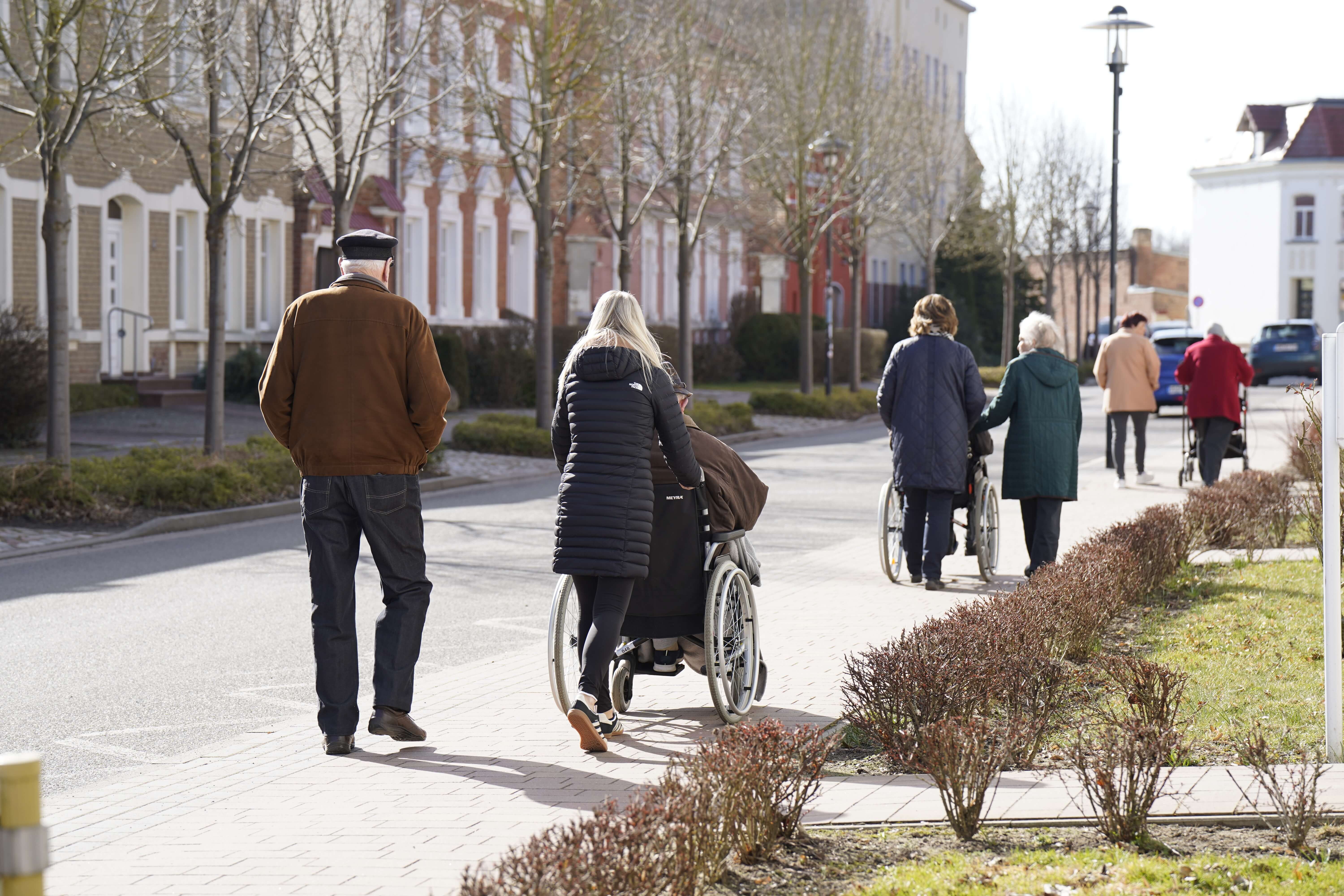 Die gemeinsamen Spaziergänge tragen dazu bei, die laufenden Gäste weiter zu mobilisieren. Aber auch für die Rollstuhlfahrer ist die Zeit draußen an der frischen Luft eine willkommene Abwechslung, um z.B. neue Eindrücke aus der näheren Umgebung zu sammeln. Das gemeinsame Erlebnis bietet darüber hinaus wieder Gesprächsstoff über die gesammelten Eindrücke.