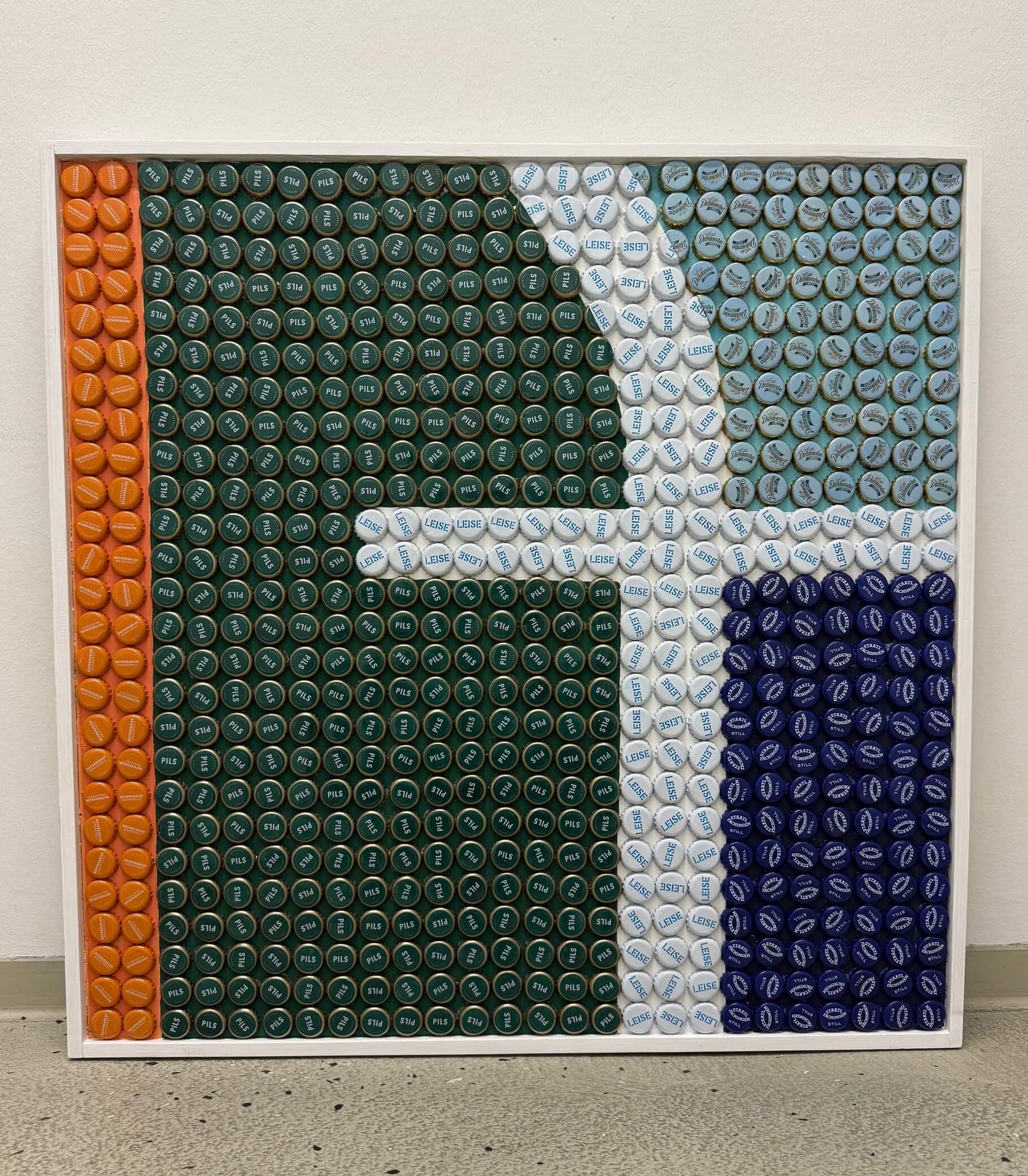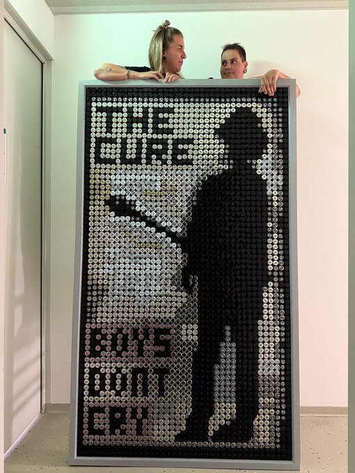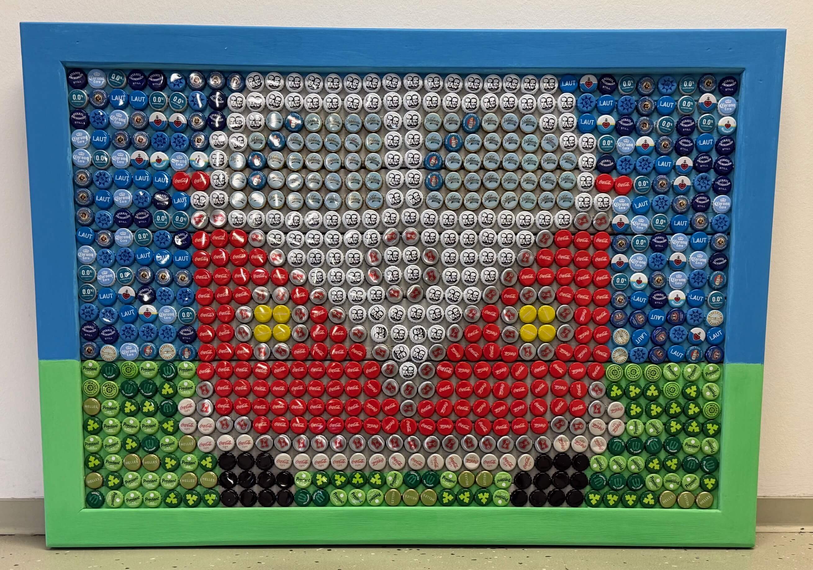 Mehrmals im Monat werden kleine Tüten voller Kronkorken am Hafen von Greifswald abgeholt. Was nach Sammelleidenschaft klingt, ist Teil eines durchdachten Konzepts: Die Flaschenverschlüsse sind Rohmaterial für beeindruckende Bilder und Projekte. Die Werkstatt nutzt diese Arbeit im Rahmen der beruflichen Bildung, in auftragsärmeren Phasen aber auch zur Förderung kreativer Fähigkeiten.