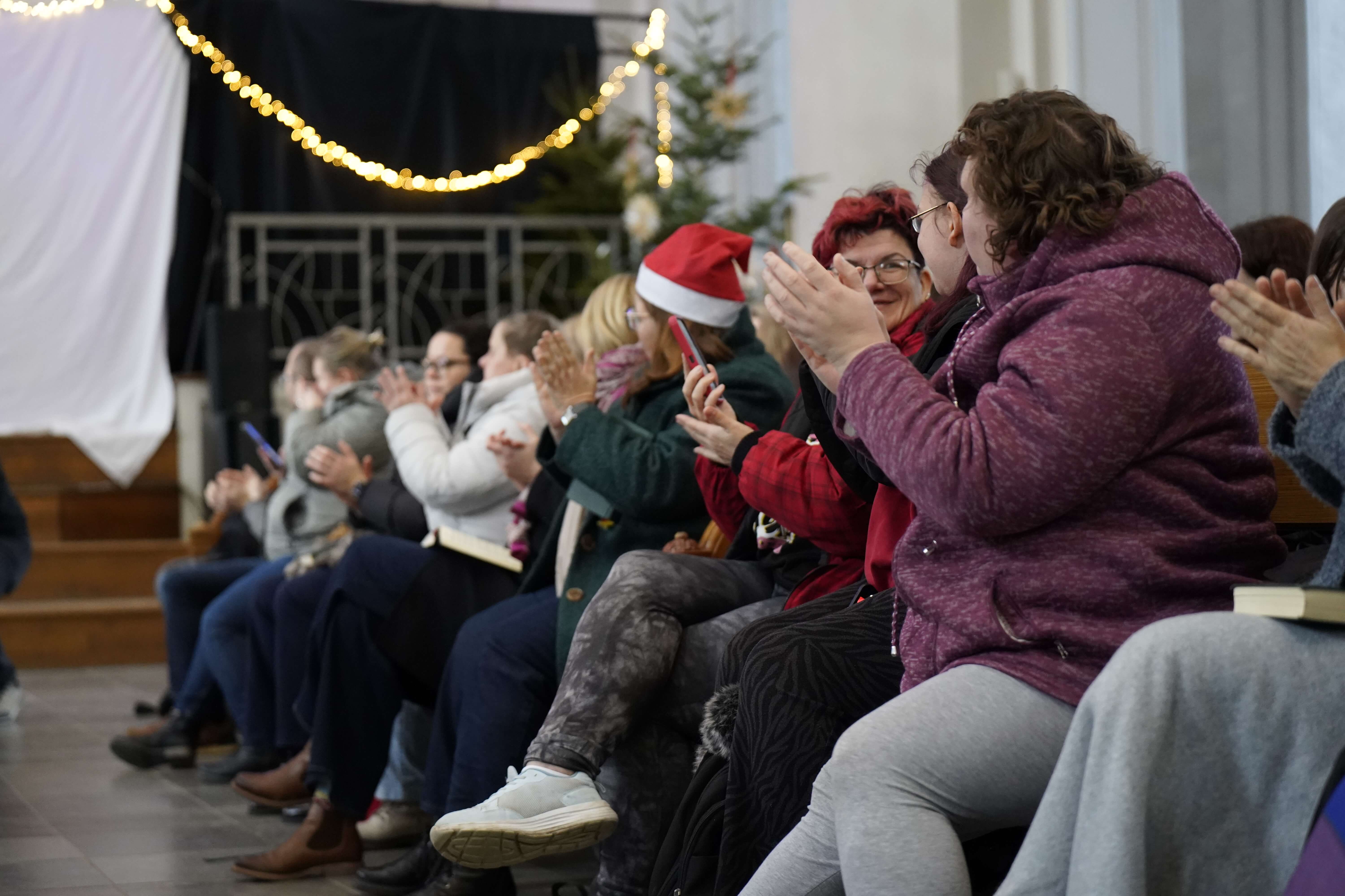 Traditionell wirken an den Vorbereitungen für diesen Tag viele Akteure mit. Insbesondere an der Darstellung der Weihnachtsgeschichte, welche in diesem Jahr durch Mitarbeitende und Teilnehmende des BerufsBildungsWerkes erzählt wurde. Licht und Schatten, begleitet durch Musik und Gesang nahmen die Anwesenden mit nach Bethlehem und der Geburt Jesu Christi. Die Weihnachtsgeschichte als Schattenspiel, eine Erfahrung, die eine ganz neue Sicht auf das Weihnachtsfest gibt. Denn sie regt zum Nachdenken über die Sicht auf die Dinge an. Licht und Schatten bestehen dauerhaft nebeneinander aber durch das Aufleuchten des göttlichen Lichts finden wir Orientierung.