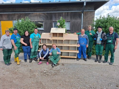 Auch die Mitarbeitenden waren sichtlich stolz auf ihr selbstgebautes „Legehotel“ – und feierten diesen Erfolg sogar mit einem kleinen Richtfest.