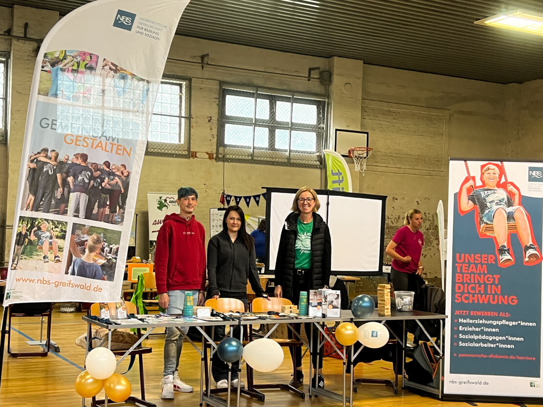 Am 25.09.2025 war die NBS gGmbH neben 16 weiteren Ausstellern mit einem Stand auf der Praxismesse des RBB V_R im Bereich Sozialwesen auf dem Stralsunder Dänholm vertreten, um jungen Auszubildenden die Arbeit in der Kinder- und Jugendhilfe vorzustellen und schmackhaft zu machen.
