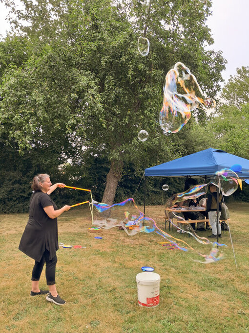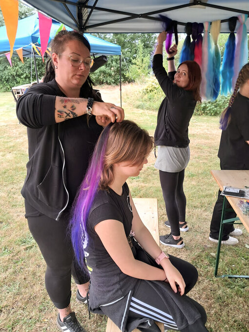 Zum Glück gab es genügend Zeit - auch für das Bemalen von Täschchen, Riesenseifenblasen, Haarsträhnen flechten oder die Edelsteinsuche.