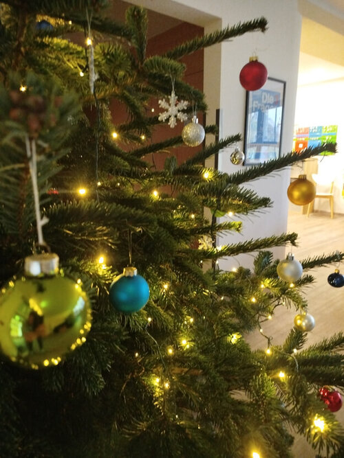 In Stoltenhagen bei Grimmen wurden die Kinder fündig und schlugen einen wünderschönen Baum. Der wurde sogleich geschmückt und läutete die Vorweihnachtszeit in der Tagesgruppe der NBS ein.