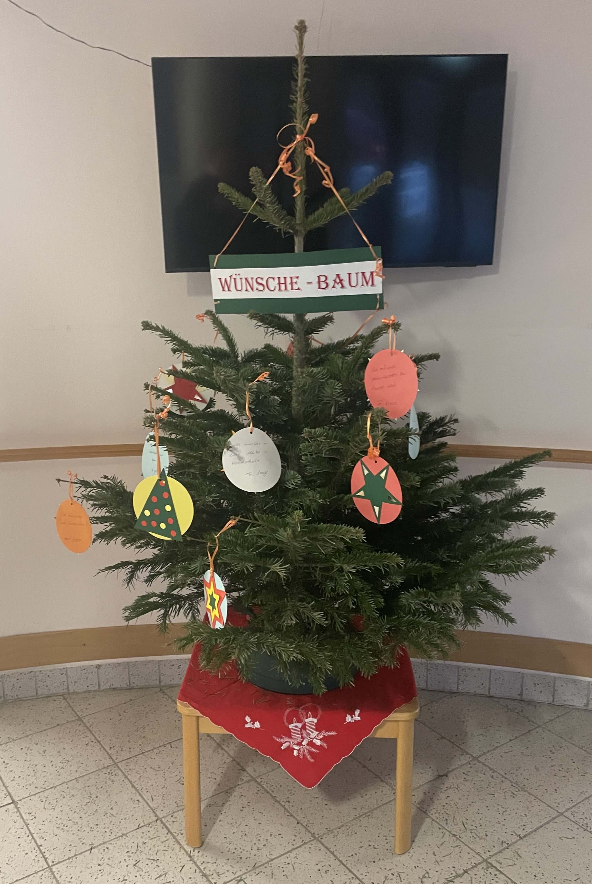 Die Wünsche sind dabei vielfältig und manchmal auch sehr emotional, wie uns die Einrichtungsleitung Frau Hübner berichtet: „Von Süßigkeiten, über Kämme, warme Handschuhe, Gesundheit und Umarmungen ist alles dabei. Jemand hat sich auch gewünscht, an Weihnachten wieder zu Hause zu sein. Das Wunschbäumchen wird sehr gut angenommen, was uns wirklich freut.“