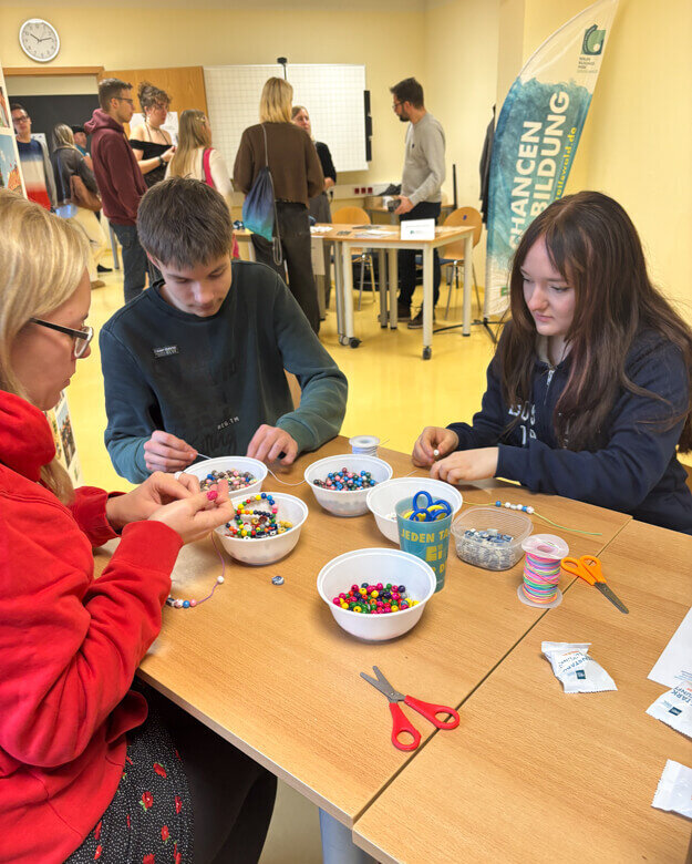 An unserem Stand konnten sie darüber hinaus Perlenarmbänder basteln und ein bisschen verweilen. Außerdem konnten sie blind kleine Figuren aus Lego nach einer Bauanleitung eines Mitstreiters:einer Mitstreiterin bauen und so ihre kommunikative Stärke testen und ausleben.